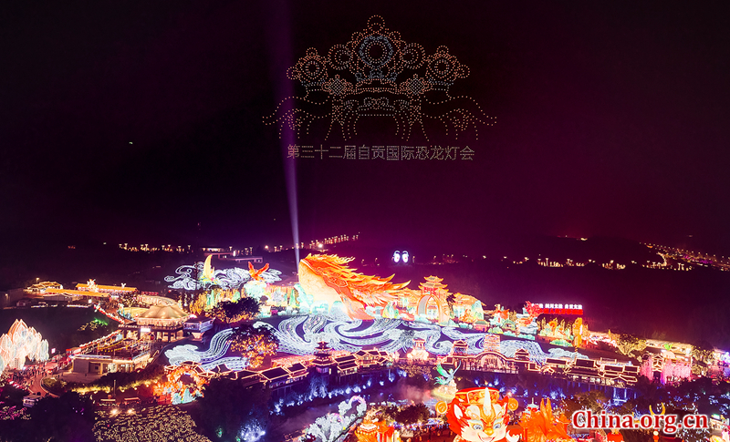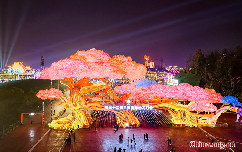 The 32nd Zigong International Dinosaur Lantern Festival officially illuminated the night sky on Jan. 23, ushering in a vibrant Spring Festival tourism season. A fleet of 2,026 drones lit up the skies over Zigong, while tens of thousands of colorful lanterns cast a warm glow over visitors.