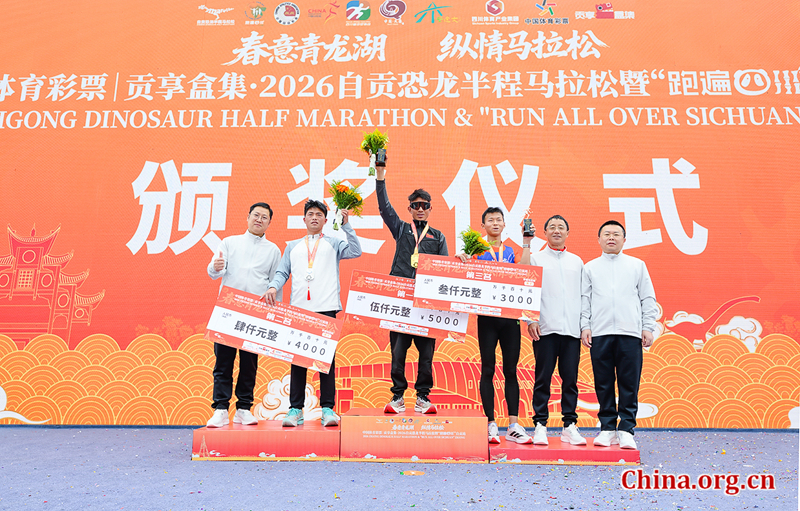 The 2026 Zigong Dinosaur Half Marathon, part of the "Run All Over Sichuan" series, officially started on March 22 at Qinglong Lake in Da'an district, Zigong.